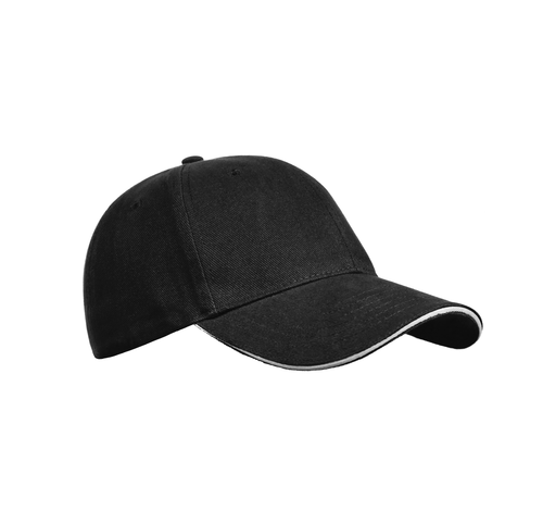Козирок жорсткого типу, з чорними та білими вставкими по оконтовці.