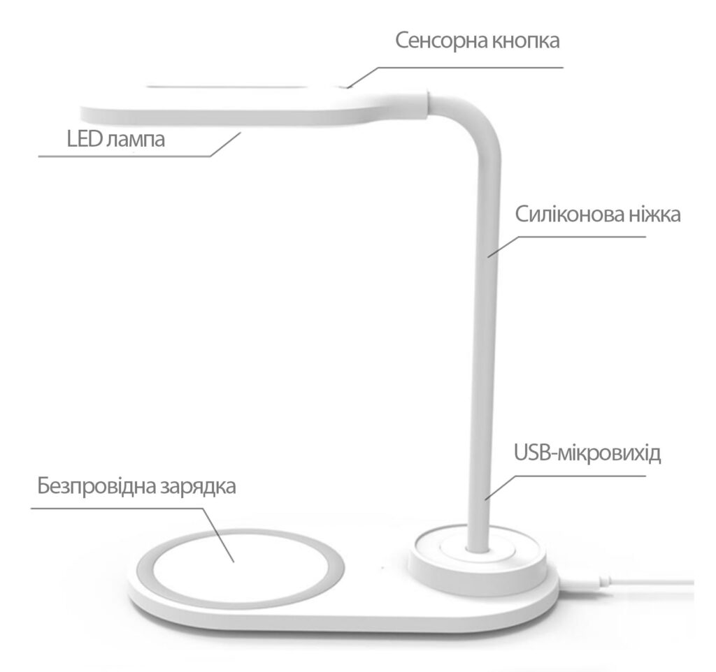 Однією з головних переваг лампи є можливість бездротового заряджання. Інтегрована система бездротової зарядки дозволяє вам зручно та швидко підзаряджати ваші пристрої, які підтримують цю технологію, просто розмістивши їх на лампі.