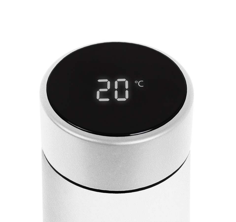 Унікальна модель зроблена з водонепроникним світлодіодним дисплеєм. Його можна повністю занурити у воду. На екрані такого термосу відображається температира рідини, що знаходиться в середині виробу. Все що потрібно зробити це доторкнутись до екрану і 4 секунди буде автоматично підсвічувати показник тепла чи холоду. Це дозволяє контролювати та візуалізувати тепло напою без відкривання термосу. Для заощадження енергії батареї та забезпечення тривалого терміну служби, світлодіодний дисплей автоматично вимикається через 4 секунди бездіяльності.